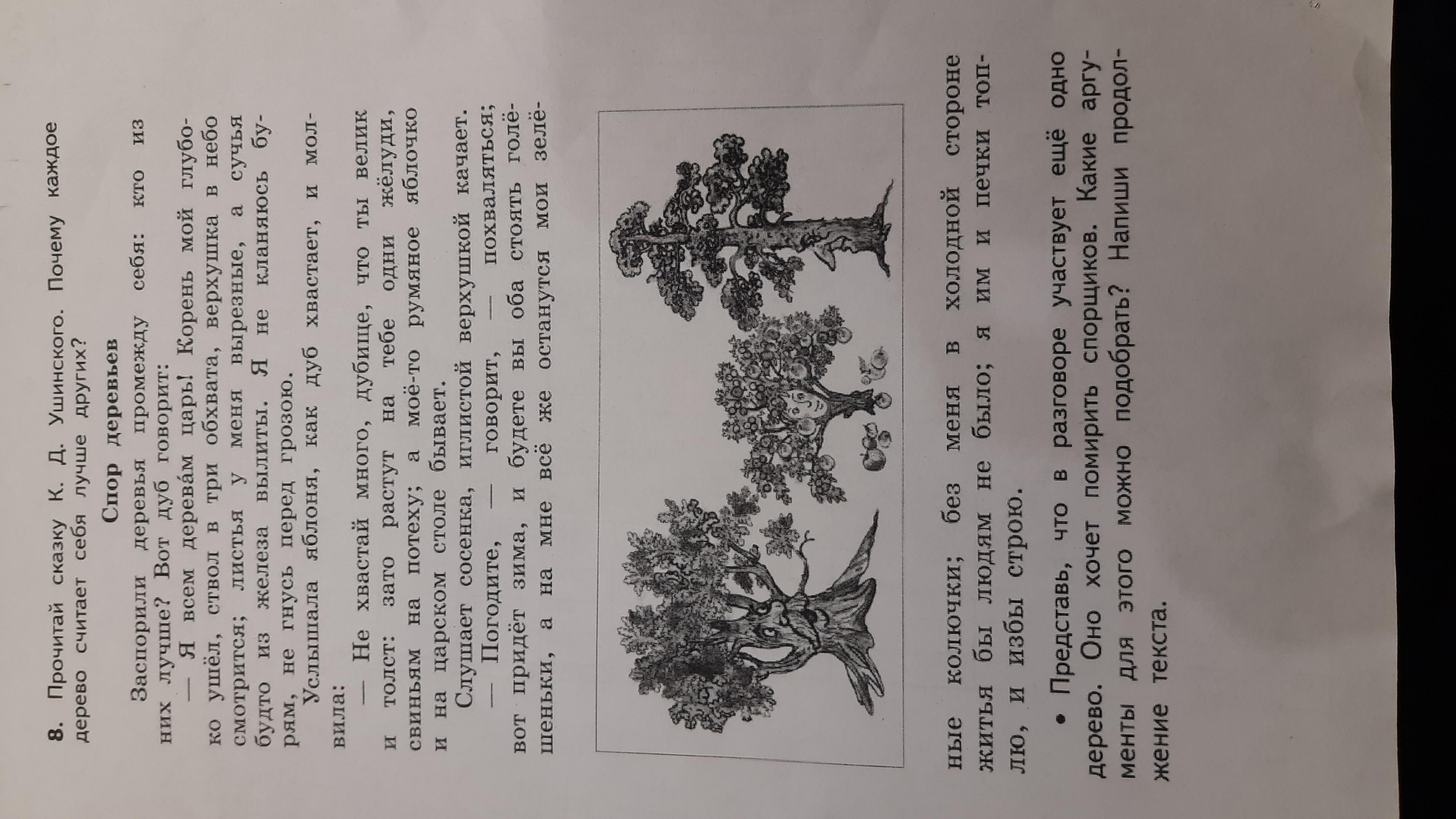3 класс. Прочитай сказку К. Д. Ушинского. Почему каждое дерево считает себя лучше других? Задание снизу.