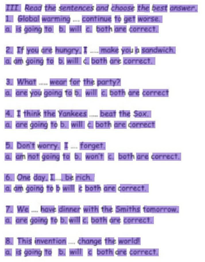 IIT Прочтите предложения и выберите лучший ответ. 1 Глобальная война будет продолжаться еще хуже. оба верны