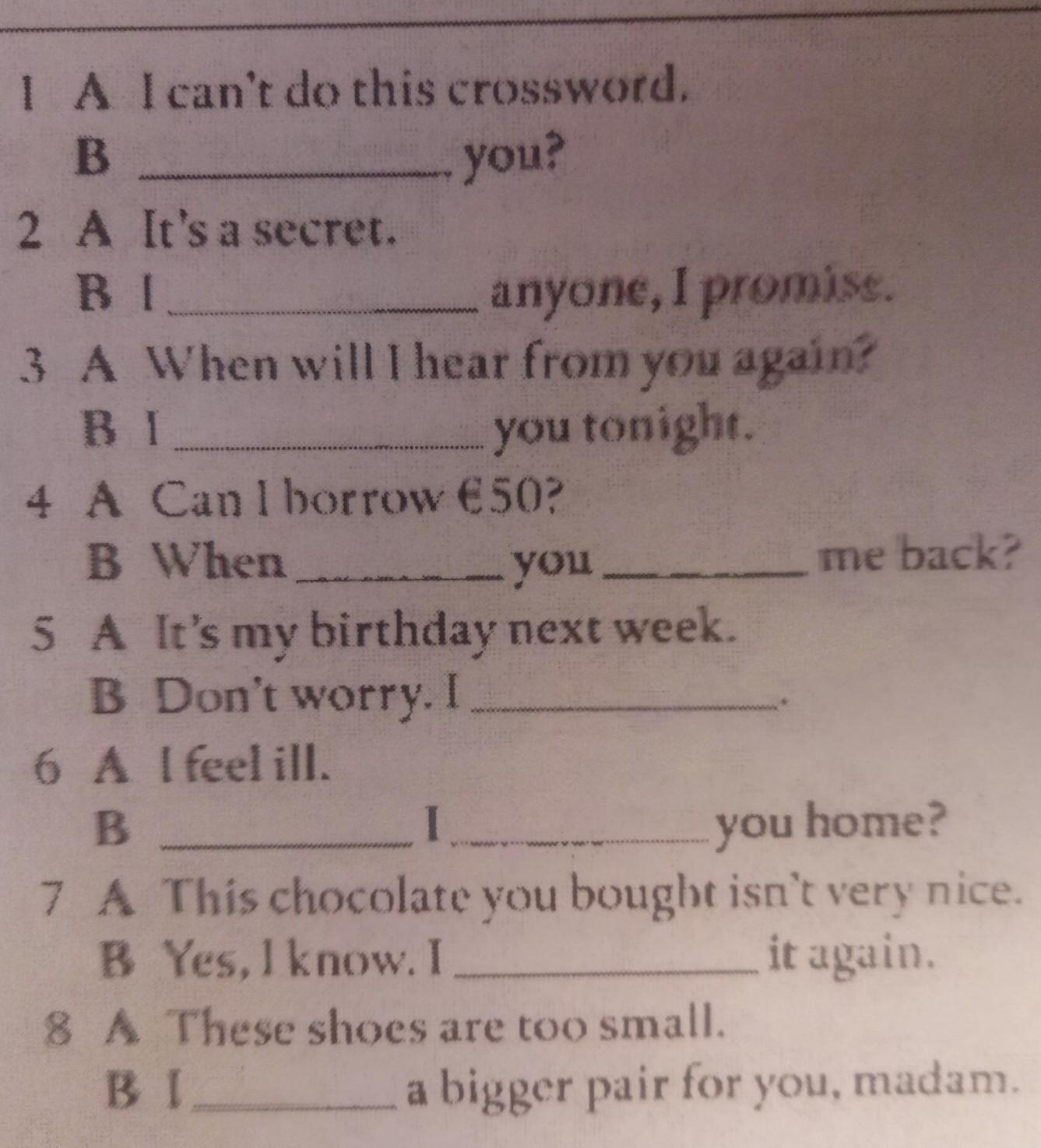 СРОЧНО!!!!!!(100балов) Complete the sentences with will/ won't (or shall) + a verb.