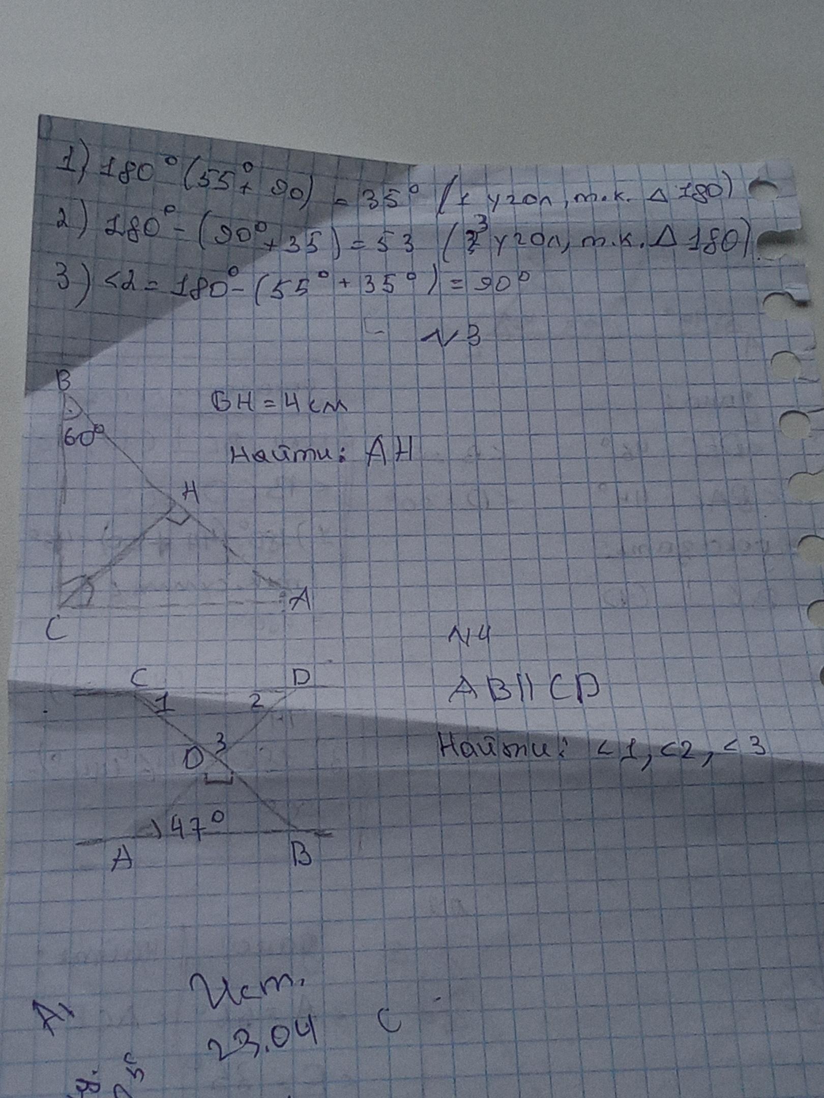 2. Угол 1 равен углу А, значит он равен 47 градусам