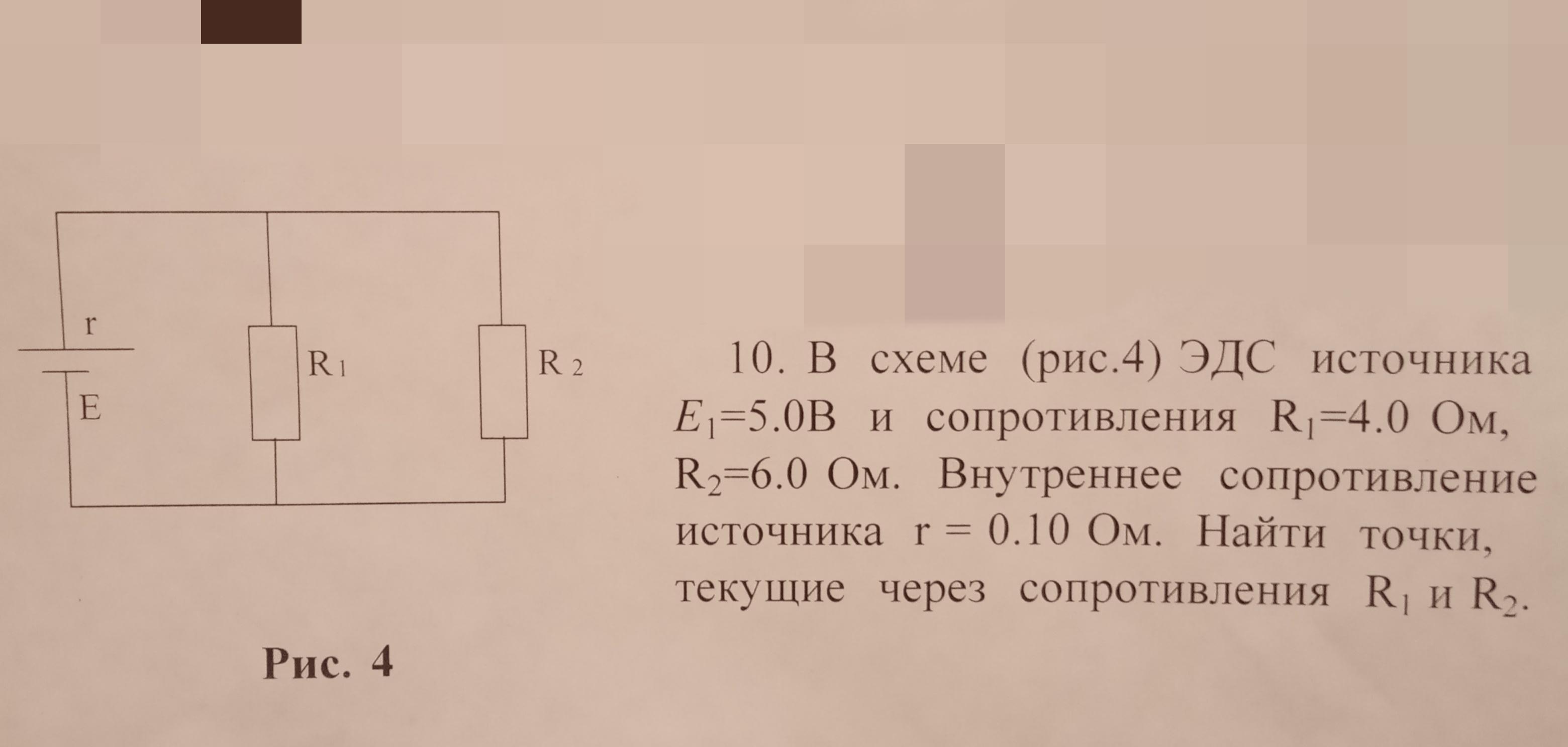 Объяснение: закон Ома для полной цепи: I=E/(R+r), где: Е-эдс; R-cопротивление цепи; r-внутреннее сопротивление источника; Резисторы подключены параллельно, значит эквивалентное сопротивление равно: Rэ=R1*R2/(R1+R2)=4*6/(4+6)=2,4 Ом.