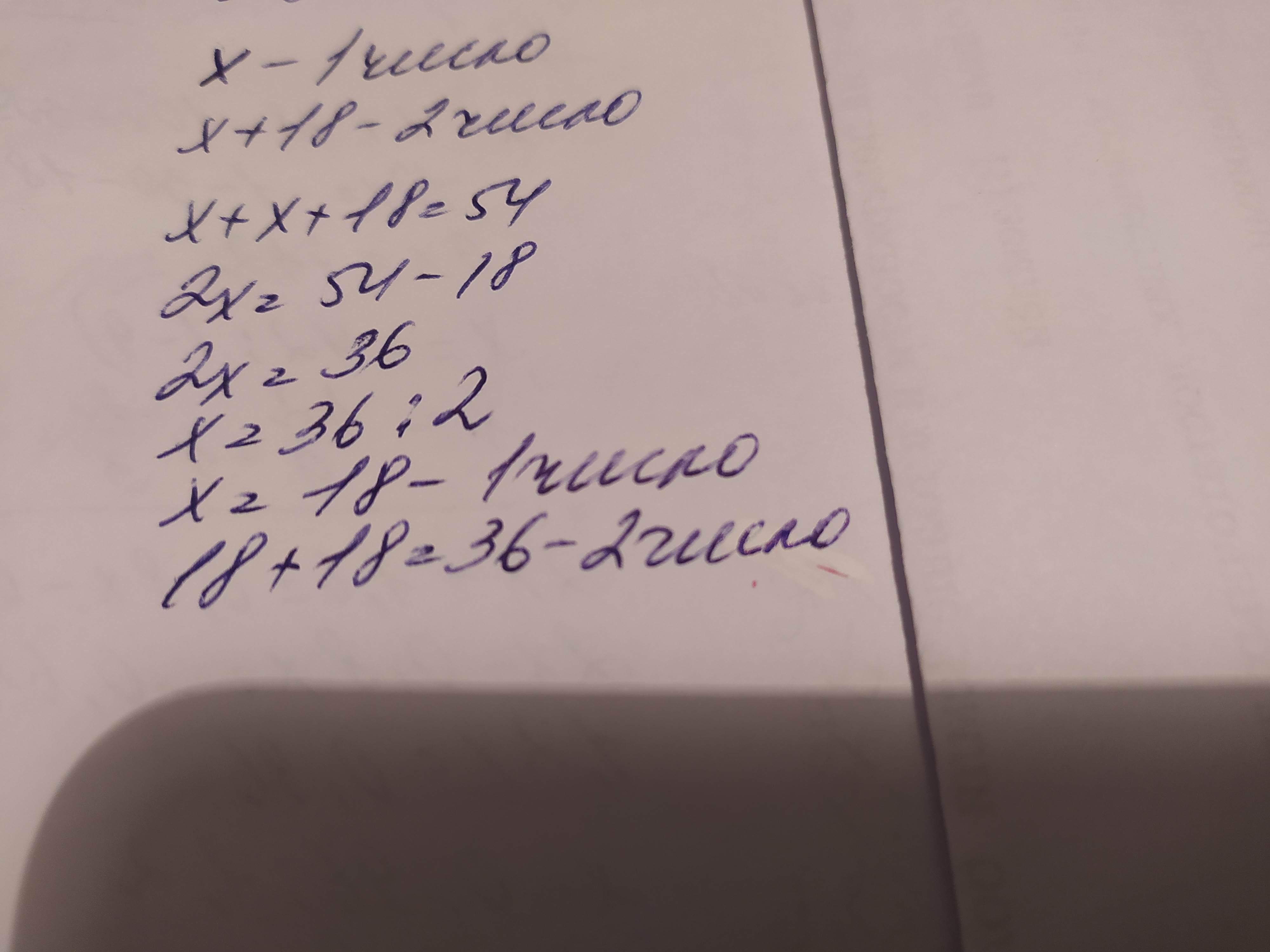 Одне з двох натуральних чисел на 18 більше, ніж друге. Знайдіть ці числа якщо їх сума дорівнює 54.