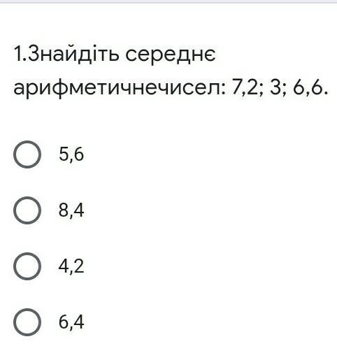 (7,2 + 3 + 6,6) : 3 = 16,8 : 3 = 5,6 ср.арифметическое этих чисел
