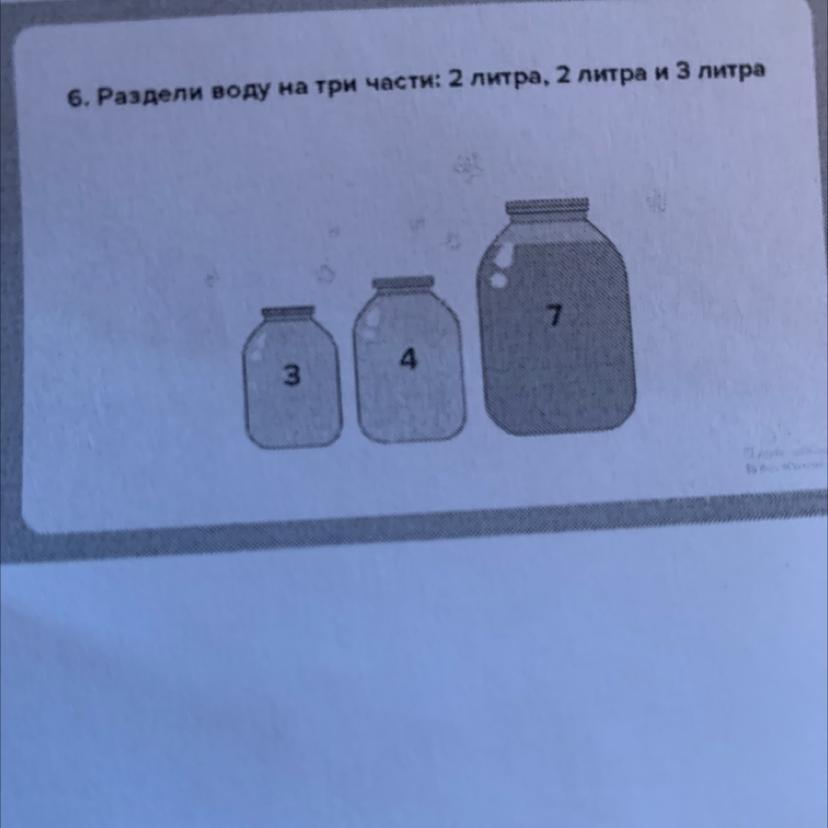 из 3 банки надо перелить 2 литра в первую,2литра во 2 а в 3 останется 3