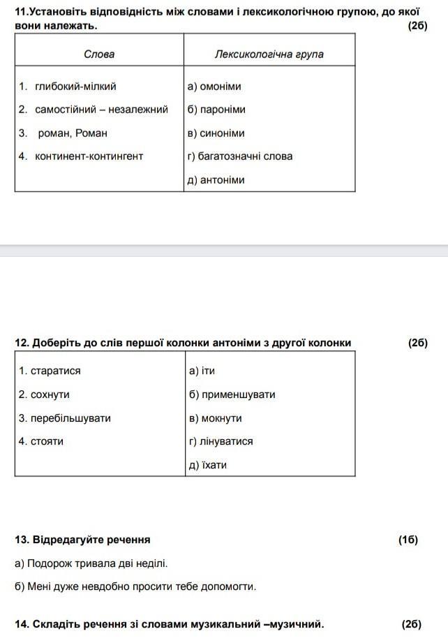 11. 1 д) 2 в) 3 г) 4 б) 5 балка- яр і балка- дерев’яна колода- омоніми