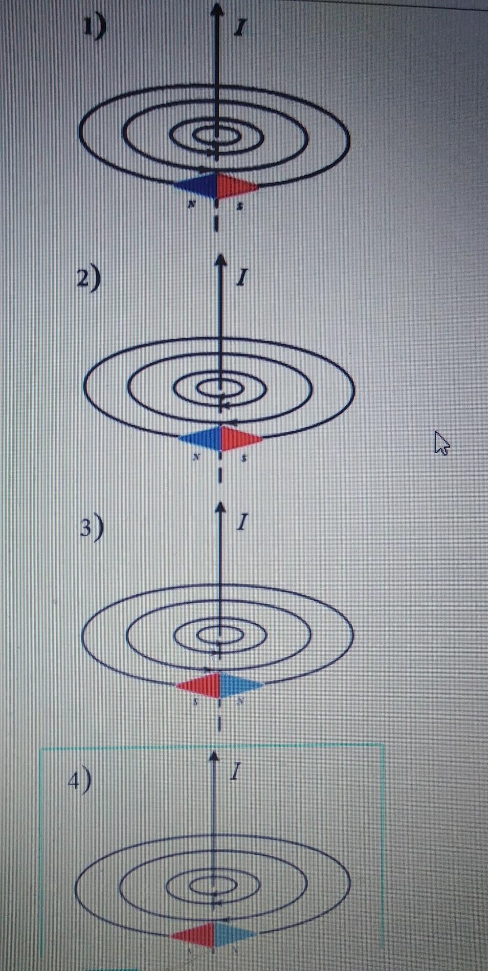 с током І., расположенного в плоскости чертежа. На каком из рисунков