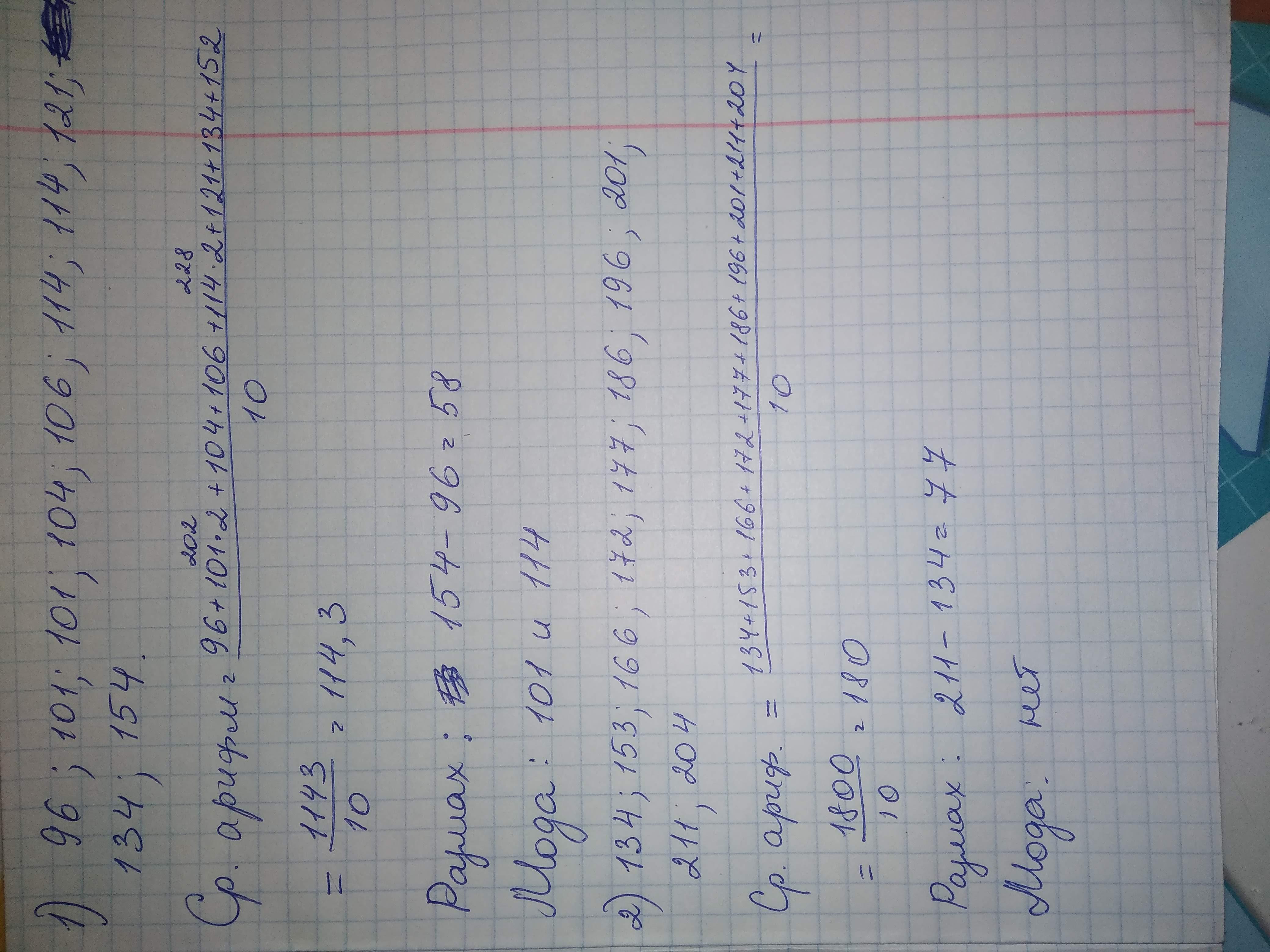 1868. Найдите среднее арифметическое чисел, размах и моду рада