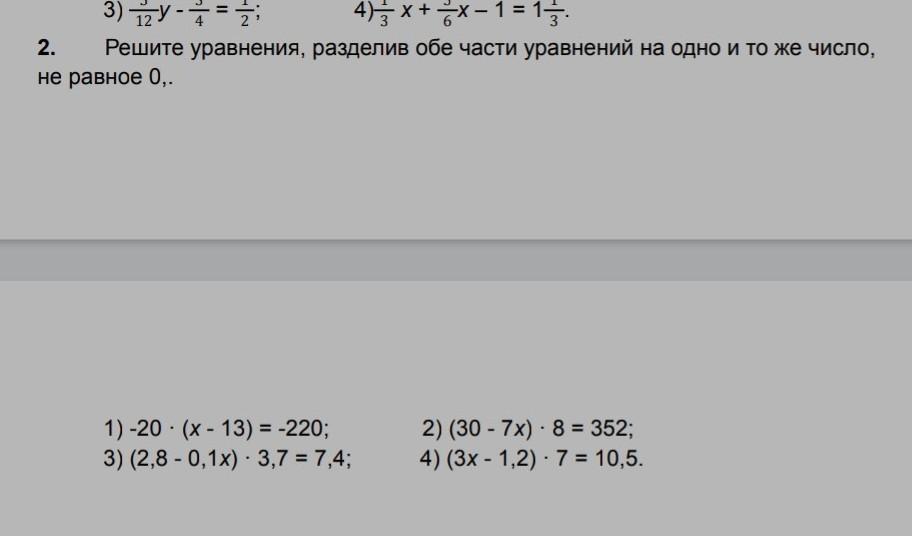 2) ( 30 - 7x )*8 = 352 ; │: 8