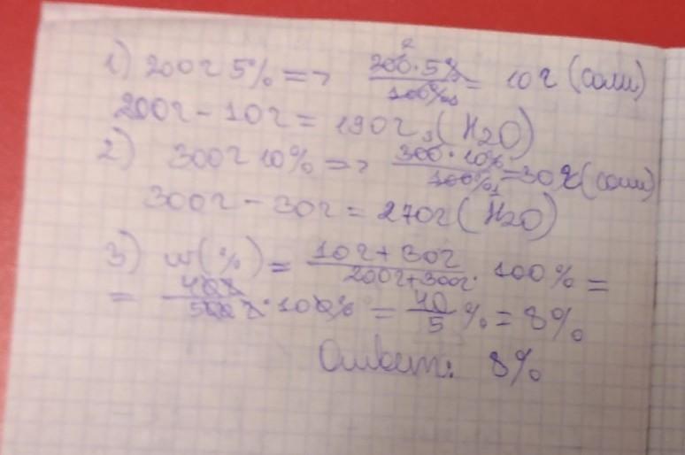 Змішали 200г 5% розчину солі з 300г 10% розчину цієї ж солі. Знайти масову частку солі в утвореному розчині пожалуйста помогите пожалуйста