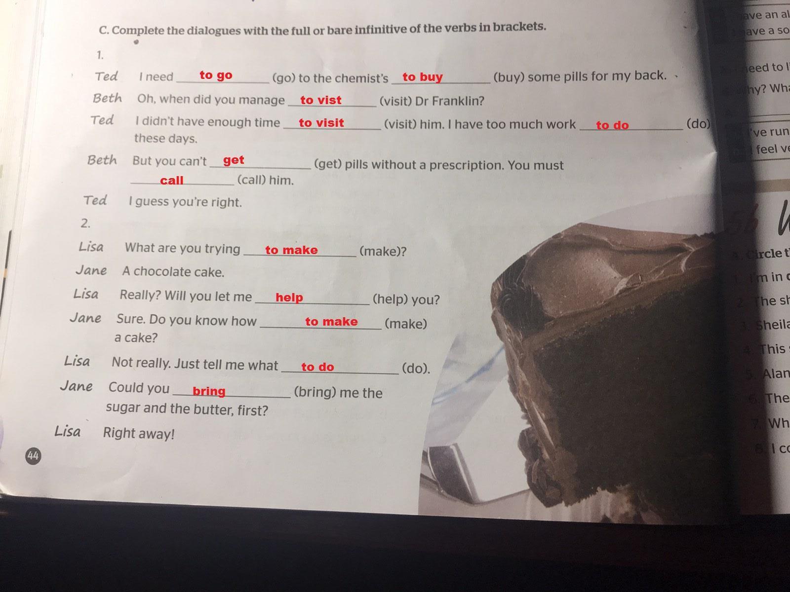 Дополните диалоги полным или обнаженным инфинитивом глаголов в скобках