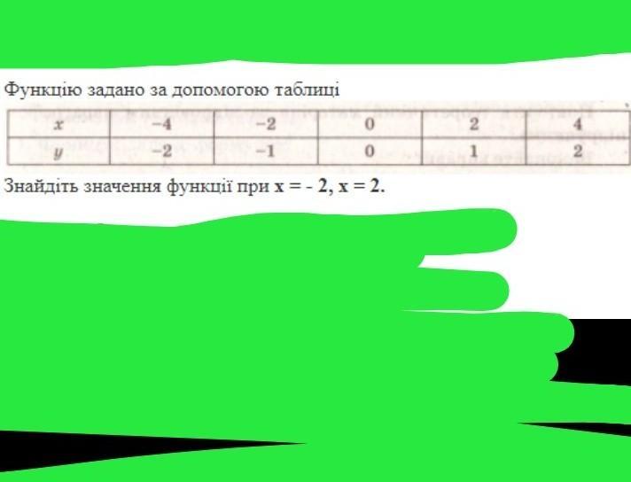 смотри ответы в таблице ищи значения x -2 и 2 ниже их написаны значения y они и будут твоим ответом.