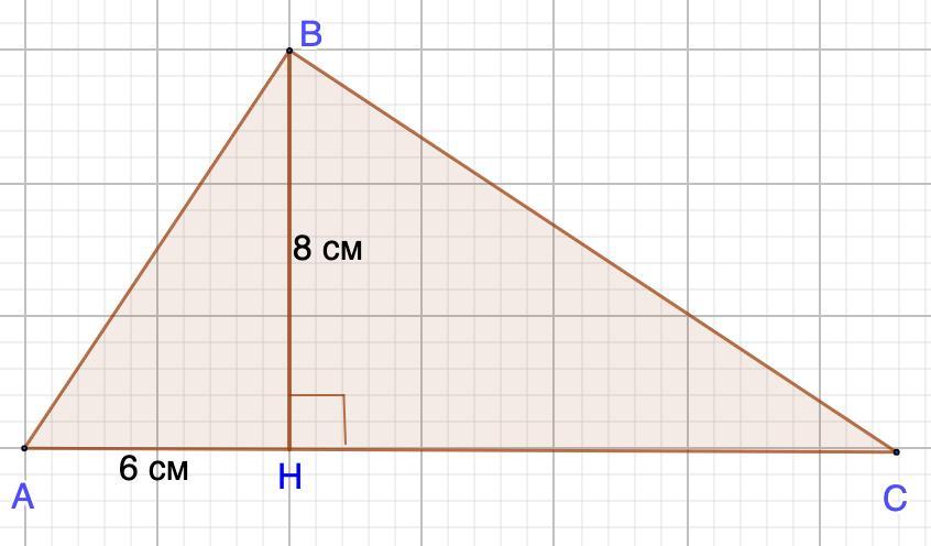 висота прямокутного трикутника, проведена до гіпотенузи, дорівнює 8 см, а проекція одного з катетів на гіпотенузу 6 см. знайти площу цього трикутника
