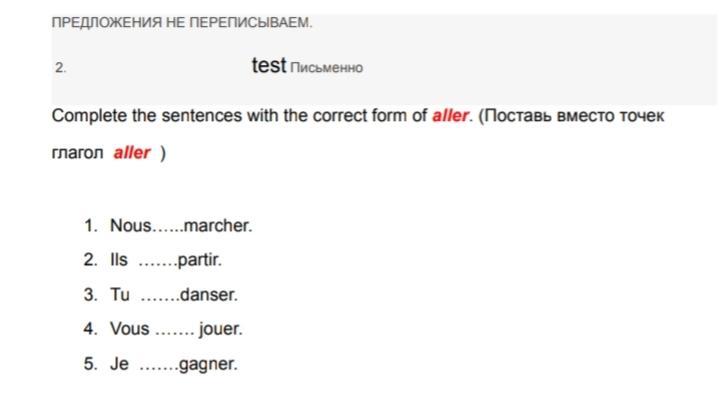 1. Allons 2. Vont 3. Vas 4. Allez 5. Vais
