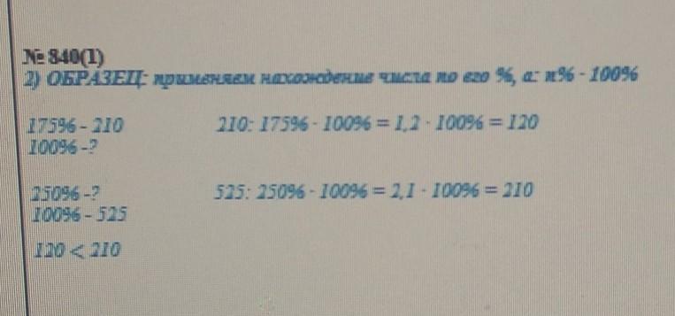 840. 1) Сравните числа, если первое число составляет 175% от числа