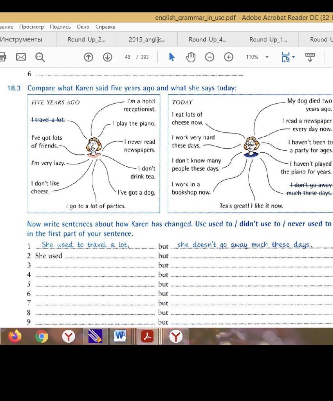 1 She used to travel a lot… but… she doesn't away much these days. but…