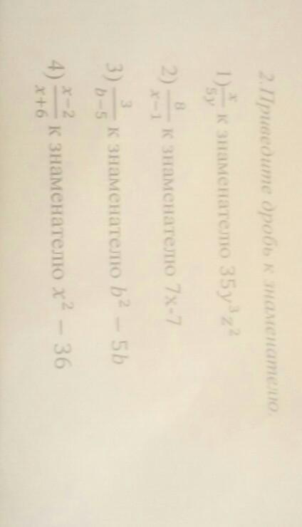 \frac{x}{5y}  * \frac{7y^{2}*z^{2}  }{7y^{2}*z^{2}}   =  \frac{7y^{2}*z^{2} *x }{35y^{3}*z^{2}}