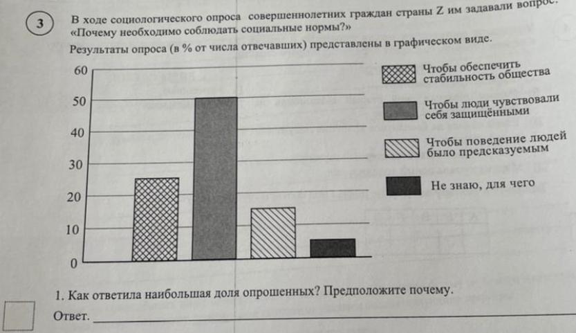 В ходе социологических опросов молодых граждан страны z им задавали вопрос почему необходимо соблюдать социльные нормы результаты опроса в (в % от числа отечавших) представлены в графическом виде