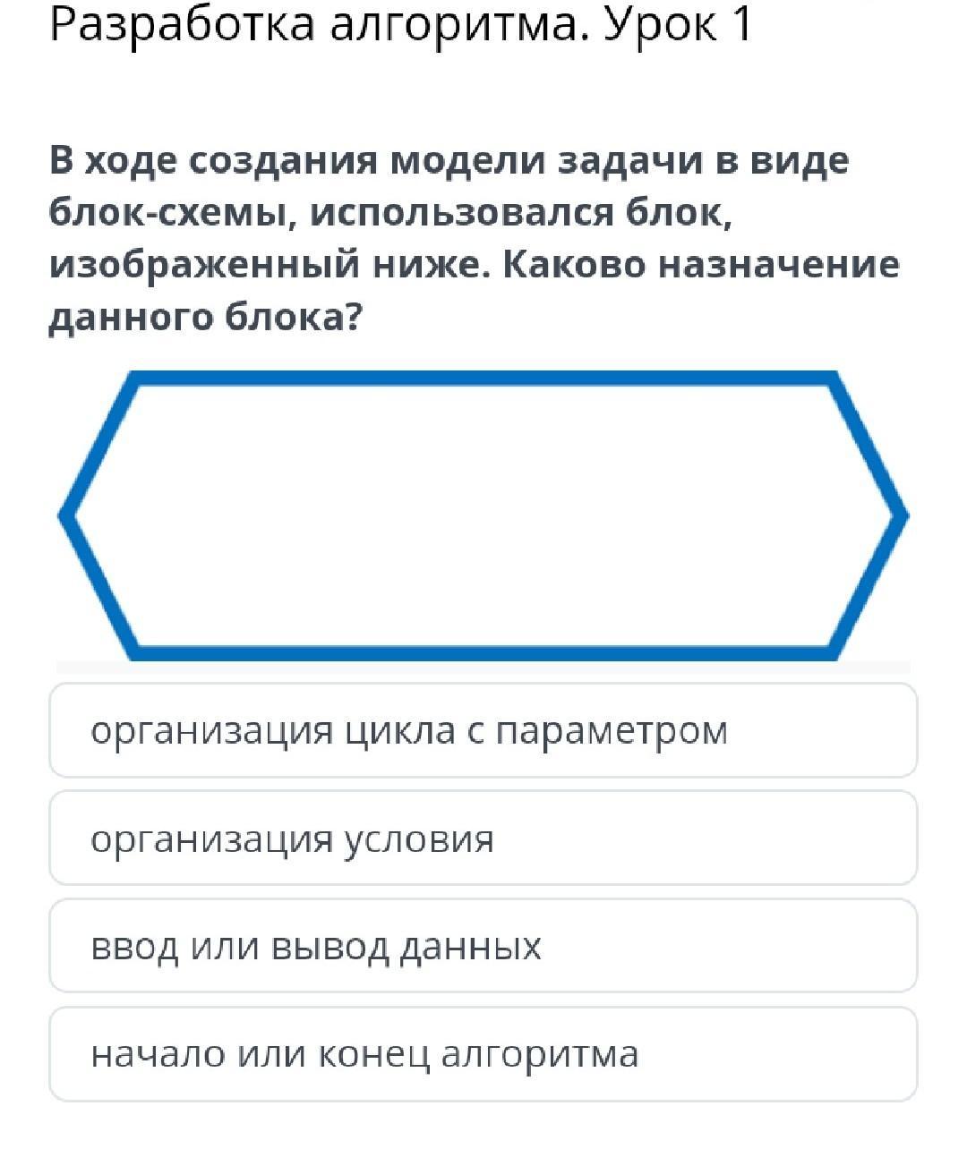 В ходе создания модели задачи в виде блок-схемы, использовался блок, изображенный ниже. Каково назначение данного блока?