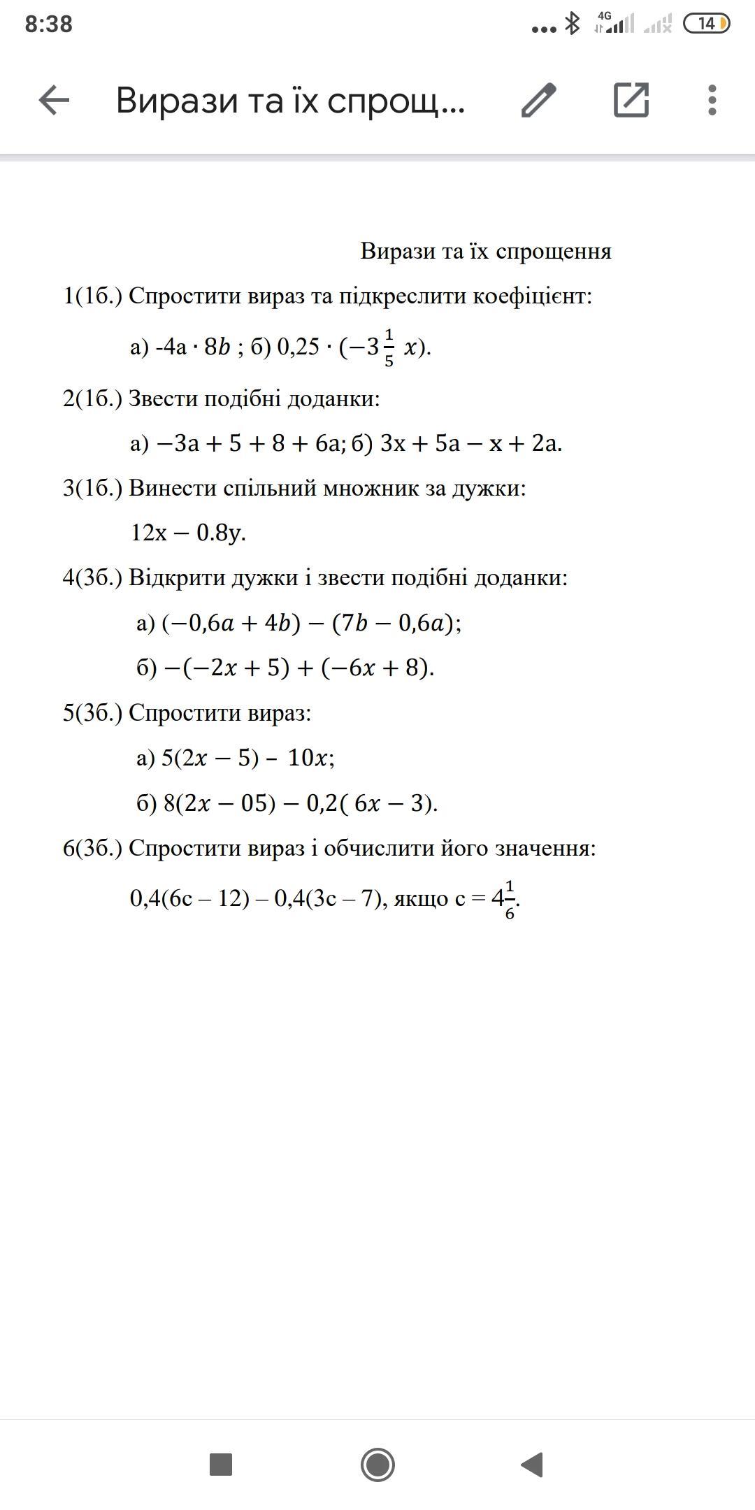 6) 0.4(6c-12)-0.4(3c-7) c=4 1/6