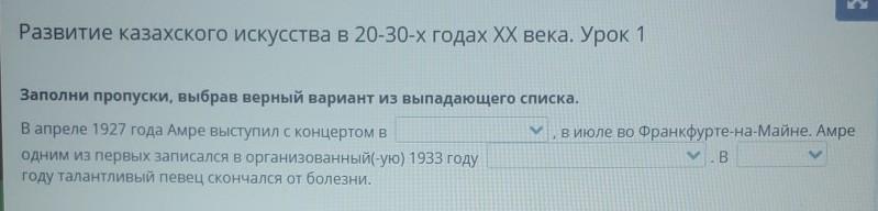 Развитие казахского искусства в 20-30-х годах XX века. Урок 1