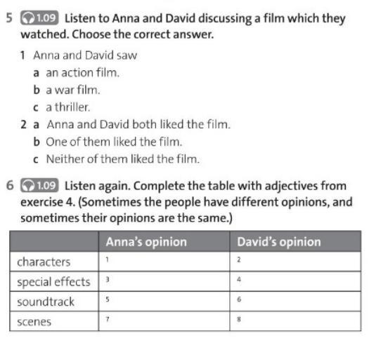 6.А сдесь прослушать и написать что сказал(а)(Анна и Дэвид) про 1)героев 2)эффекты в фильме 3)про звуковые эффекты 4)сцены