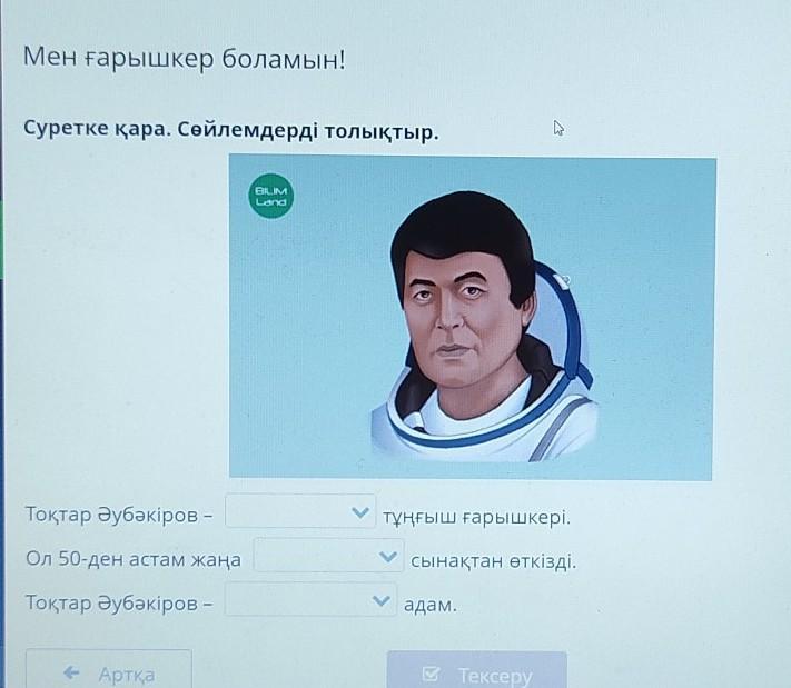 1.Тоқтар Əубəкіров - Қазқстандағы тұңғыш ғарышкер.