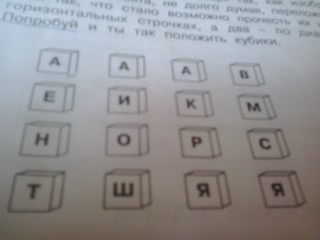 Шестеро ребят–катя,витя,саша,вера,соня и миша –получили коробку с кубиками.кубики в коробке лежали буквами вверх так,как изображено на рисунке.ребята,не долго думая,переложили кубики так,что стало возможно прочнсть их имена в горизонтальных строчках,а два–по диогоналям.