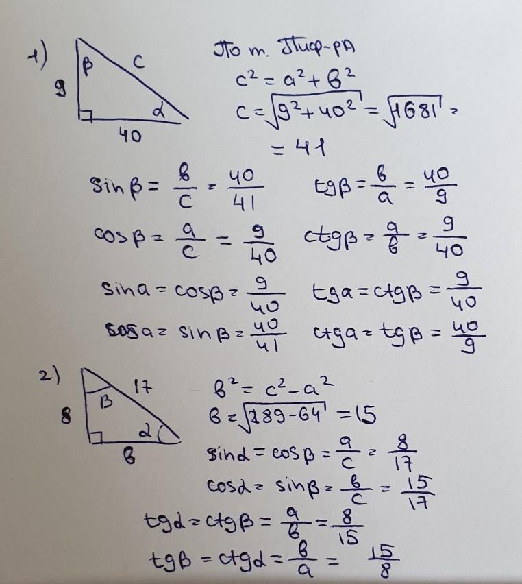 Знайти синус, косинус, тангенс і котангенс гострих кутів трикутника