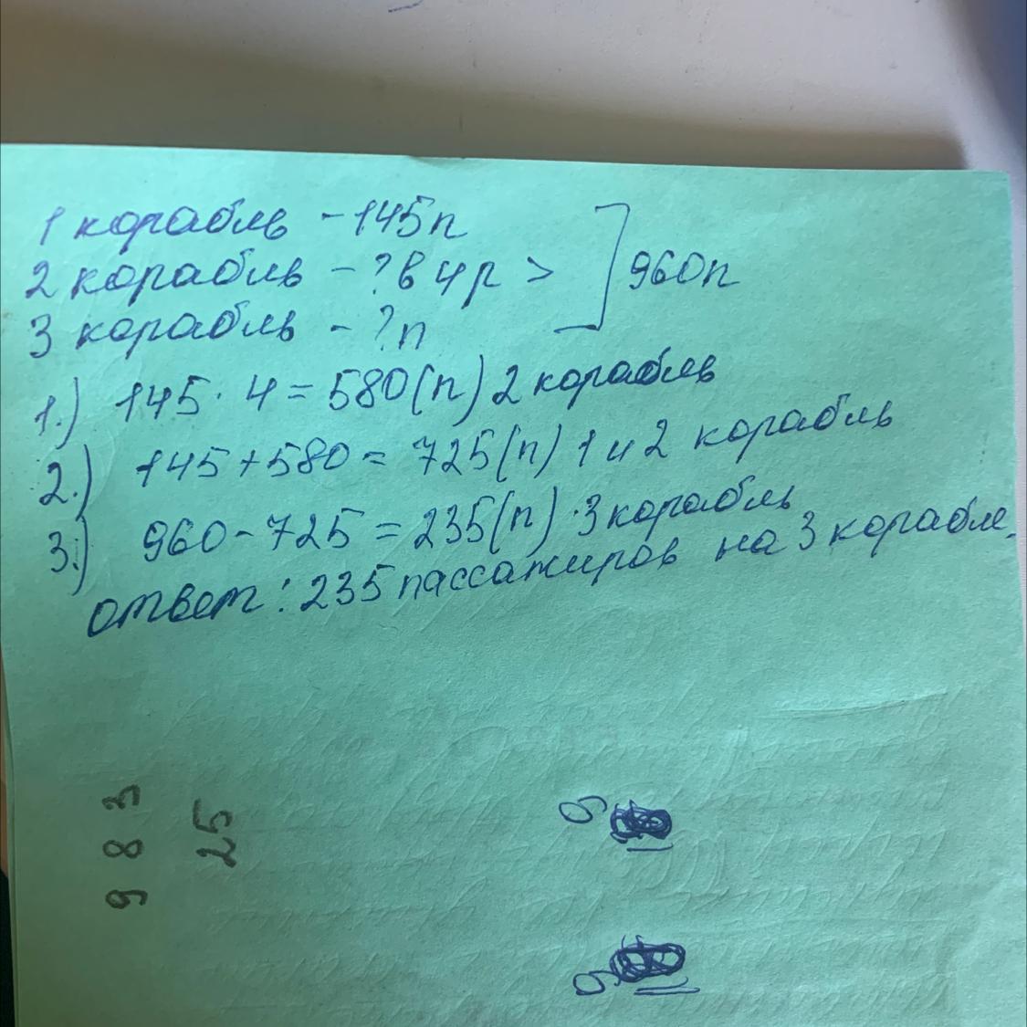 2. 960-580-145=235(п) - на 3 корабле