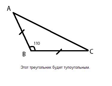 Начертите равнобедренный треугольник, у которого величина угла между боковыми сторонами равна 100°.Каким является этот треугольник¦прямоугольным,тупоугольным,остроугольным?