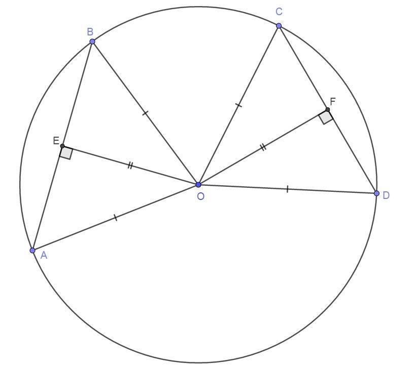 OAB и OCD - равнобедренные треугольники с высотами, медианами и биссектрисами OE и OF соответственно.