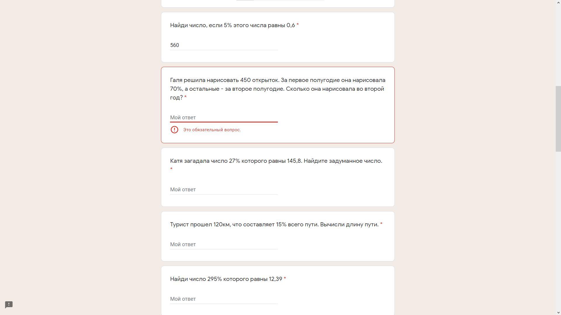 галя решила нарисовать 450 открыток.за первое полугодие она нарисовала 70%,а остальные - за второе полугодие.сколько она нарисовала во второй год? и пж можно остальное все решить ну что на скрине