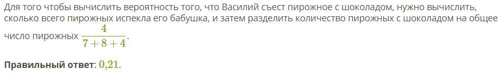 Ответ: вероятность того, что Василий съест пирожное с шоколадом: