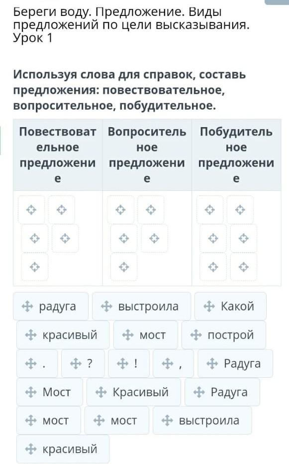 Используя слова для справок, составь предложения: повествовательное, вопросительное, побудительное.