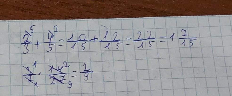 В первом 2/3 + 4/5 общий знаменатель 15