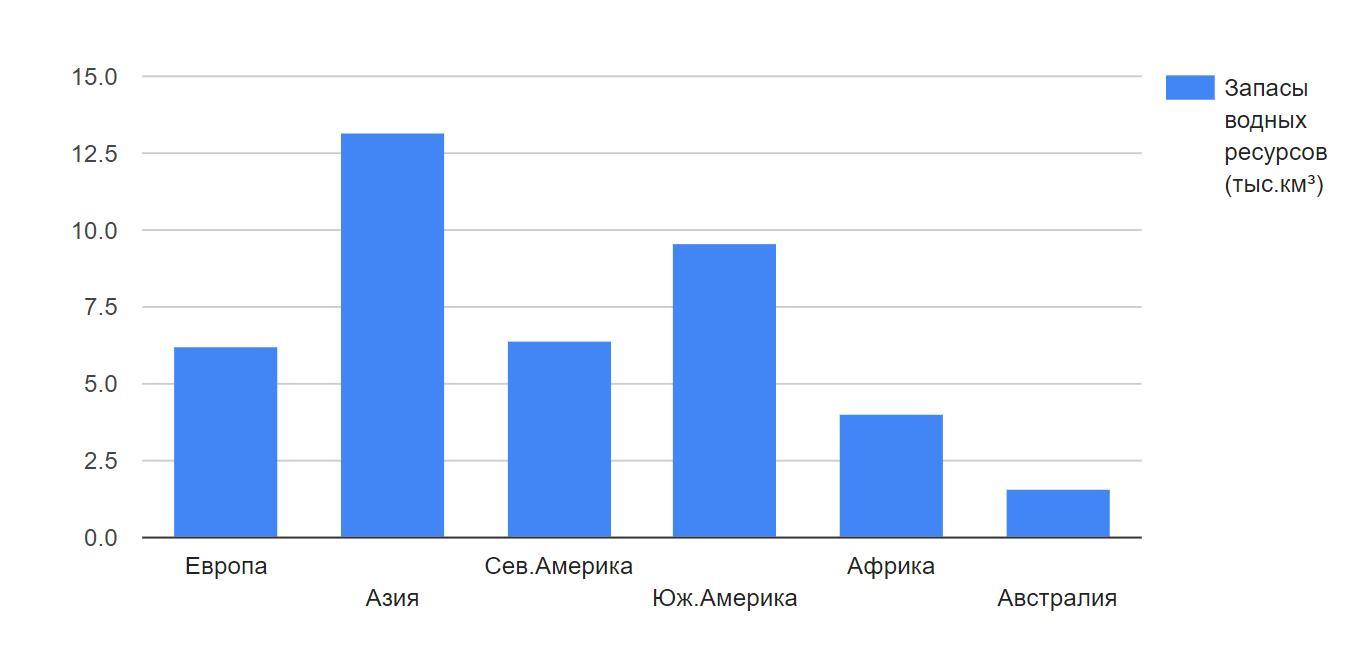 Регионы мира Запасы водных ресурсов, тыс. км3