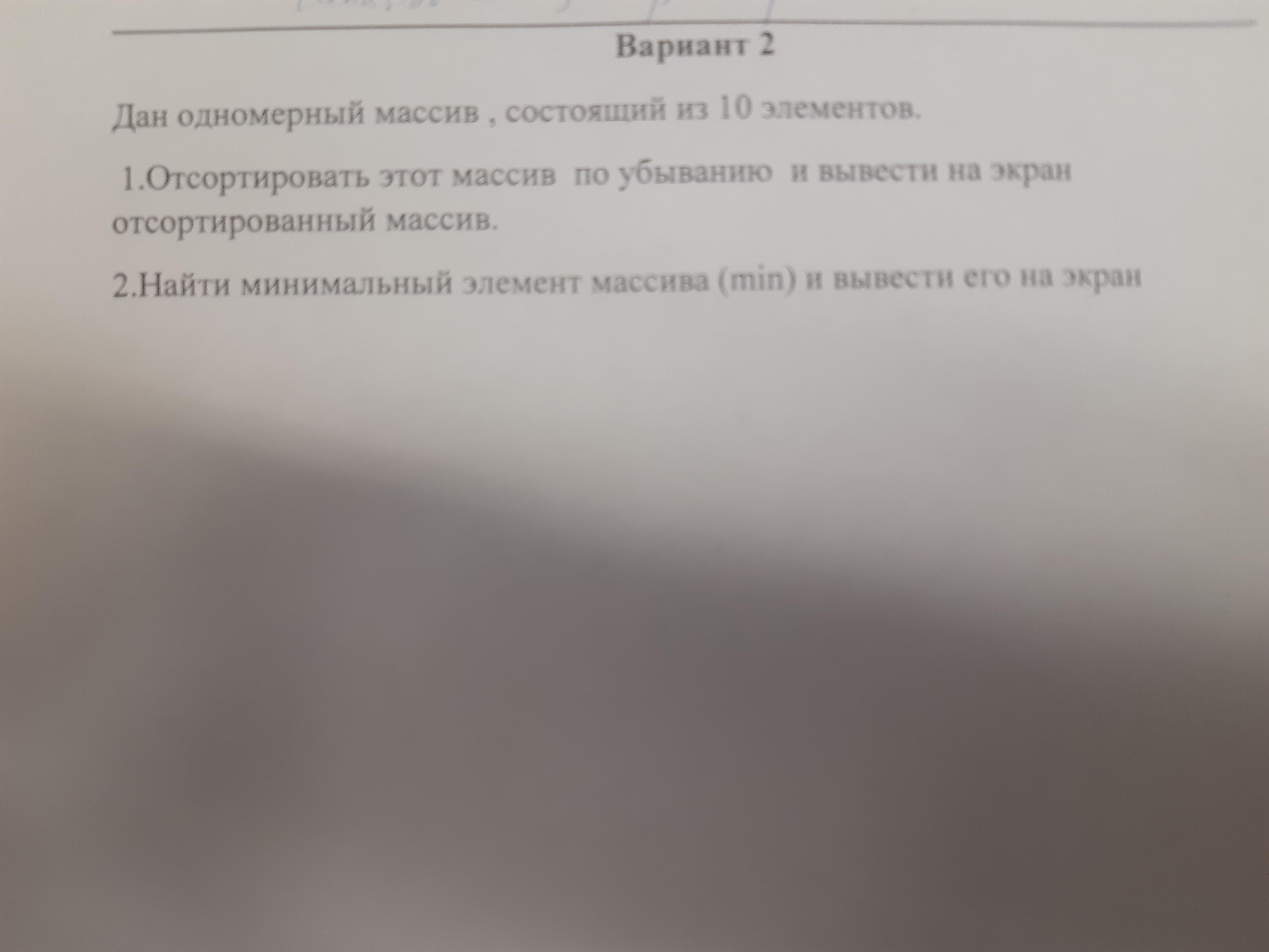 Для сортировки массива по убывания можно воспользоваться пузырьковой сортировкой, либо встроенной функцей библиотеки.