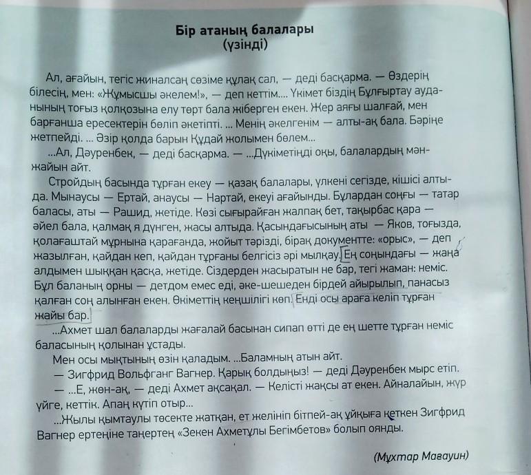 3- тапсырма. Оқыған мәтінге 5 сұрақ құрастырып жазыңыз. / к тексту 3- тапс. составить 5 вопросов/
