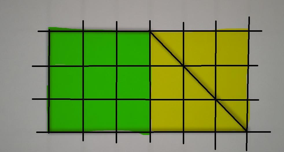 Заметим, что исходную фигуру можно разделить на две: квадрат размером 3 на 3 клетки и треугольник (смотри рисунок ниже). На рисунке закрасил квадрат зеленым, а про треугольник видно, что по площади он равен половине квадрата размером 3 на 3 клетки (закрасил желтым).