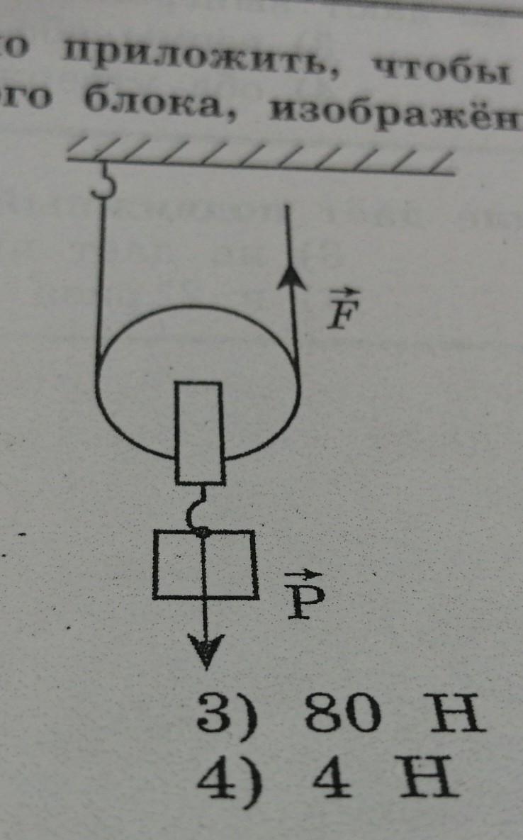 какую силу F нужно приложить, чтобы поднять груз весом 40Н с помощью подвижного блока, изобраденного на рисунке. СРОЧНО.