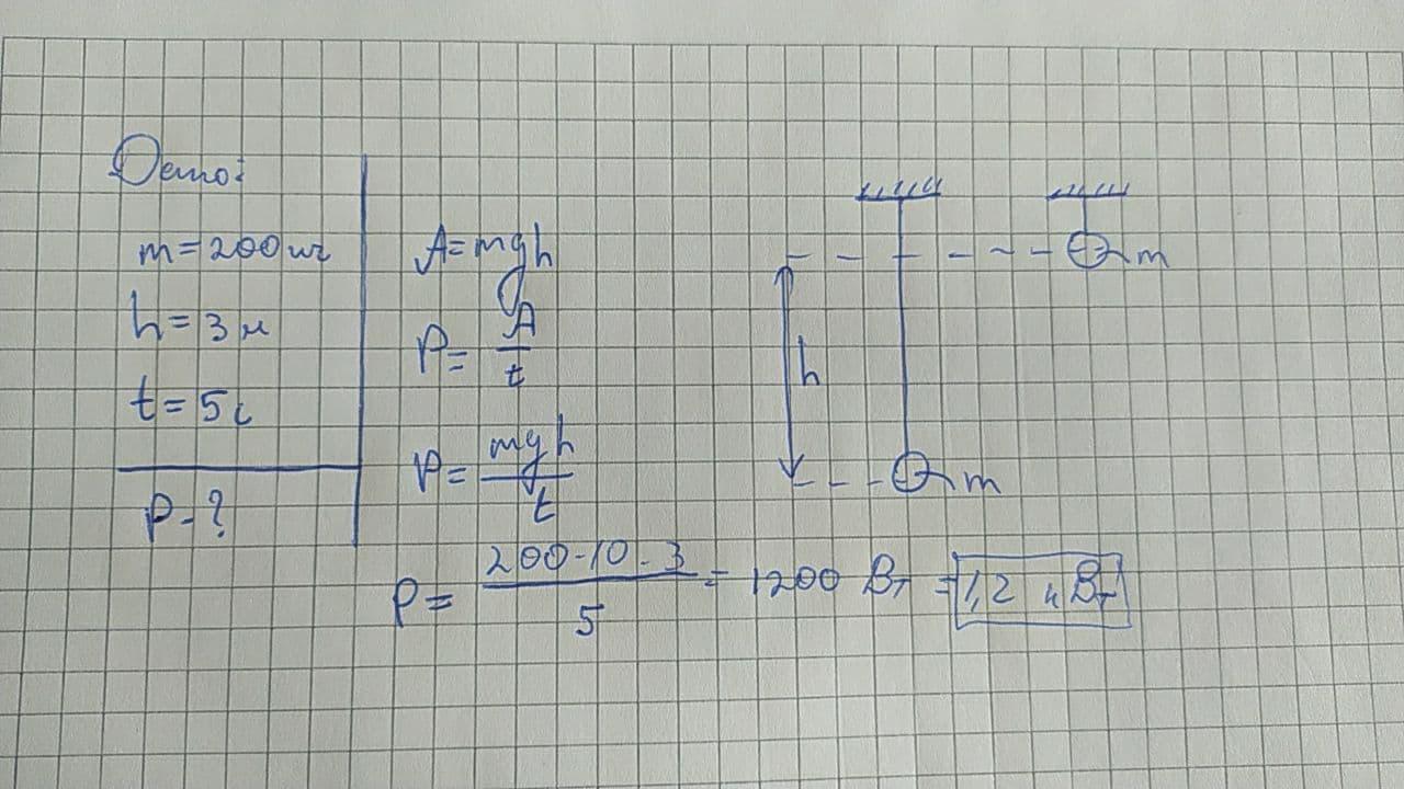 СРОЧНО, С ОБЪЯСНЕНИЕМ, ДАЮ 40Б!!! Лебідка рівномірно піднімає вантаж масою 200 кг на висоту 3 м за 5 с. Чому дорівнює потужність лебідки?