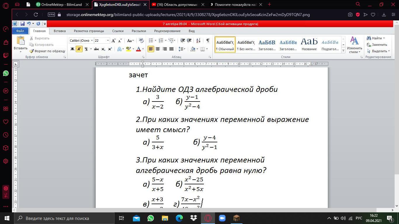 Помогите найти одз алгебраической дроби в первом задании