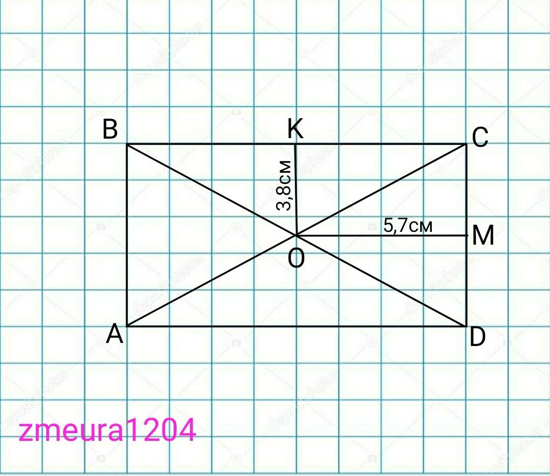 AB=2*KO=2*3,8=7,6см сторона прямоугольника