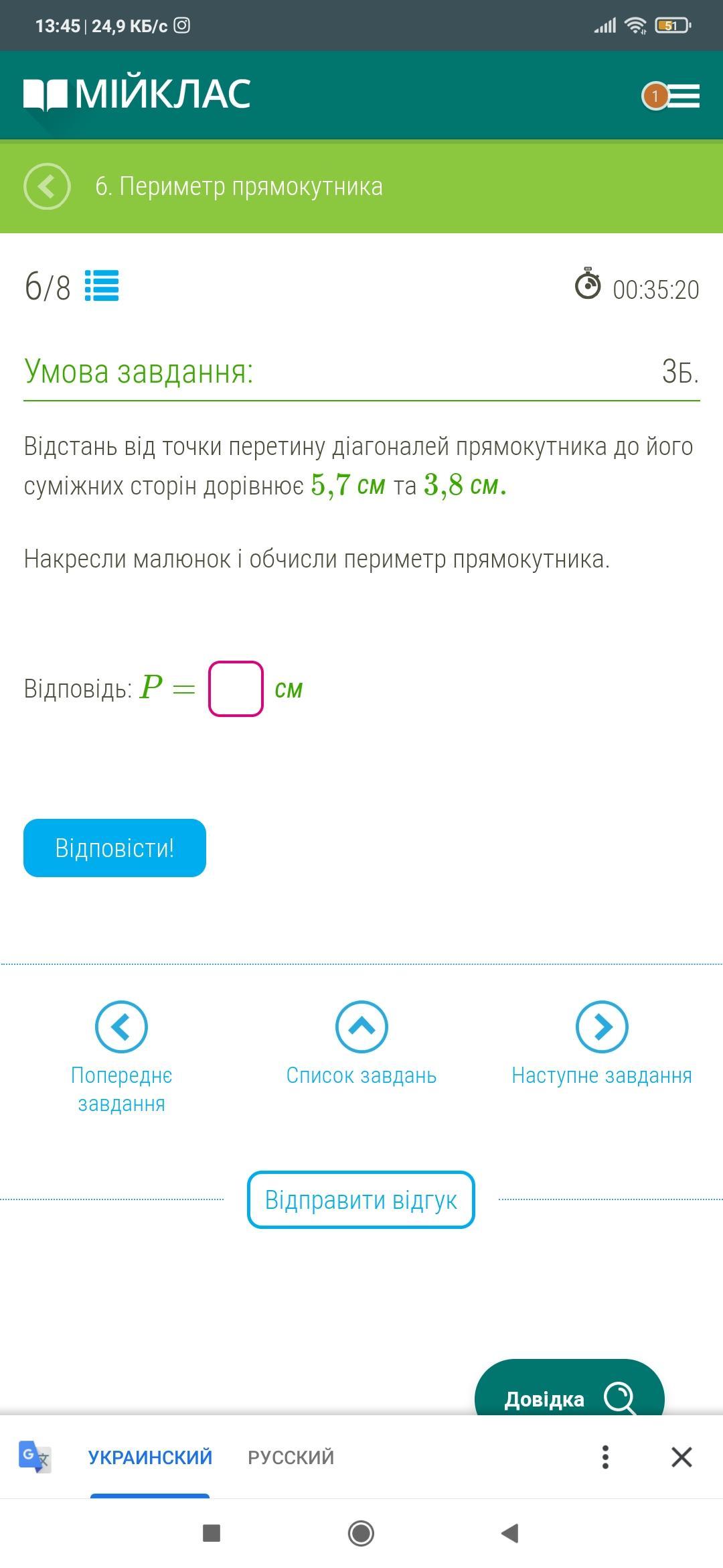 ВС=2*ОМ=2*5,7=11,4см сторона прямоугольника.