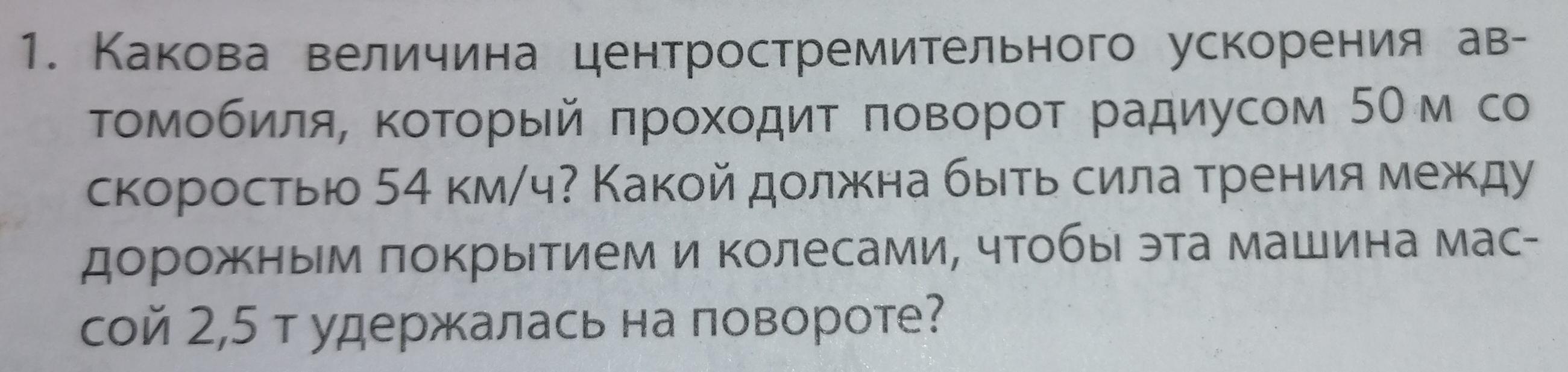 Дано R=50 м V=54 км/ч=15 м/с m=2500 кг а - ? Fтр - ?