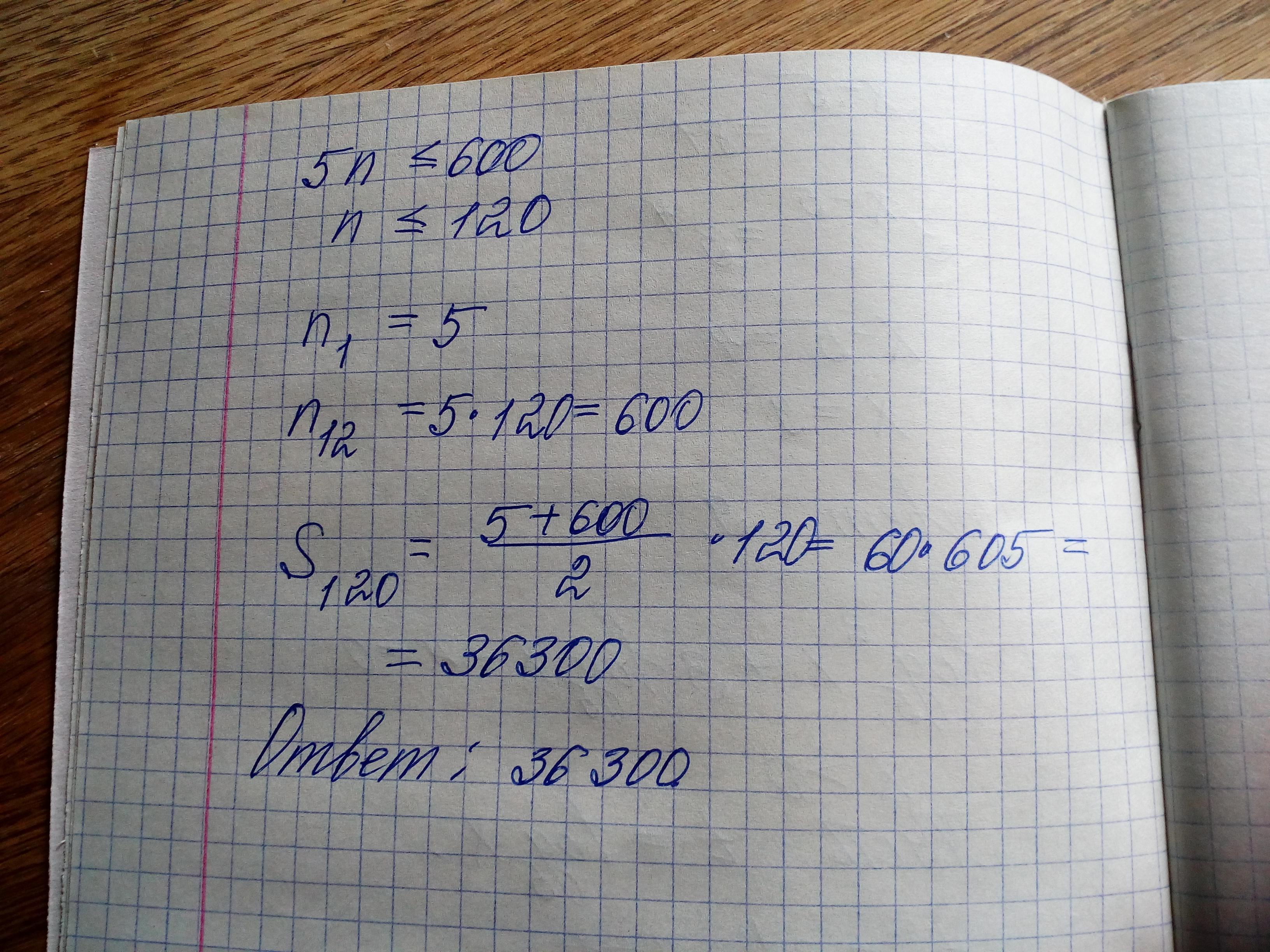 знайдіть суму всіх натуральних чисел які кратні 5 і не перевищують 600