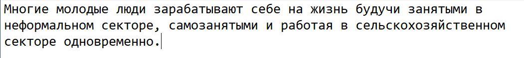 Многие молодые люди зарабатывают себе на жизнь, будучи заняты в неформальном секторе, самозанятыми и работая в сельскохозяйственном секторое одновременно.