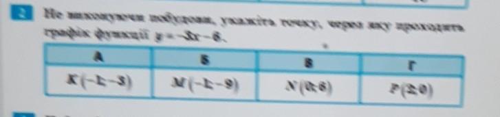 Не виконуючи побудова, укажіть точку, через яку проходить