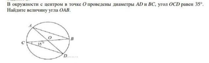 OCD=BCD=35, OAB=DAB т.к. углы BCD и DAB опираются на одну дугу, они равны 35