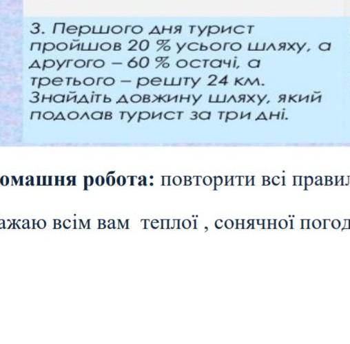 1) 100% -20%=80% пути осталось пройти после 1-го дня